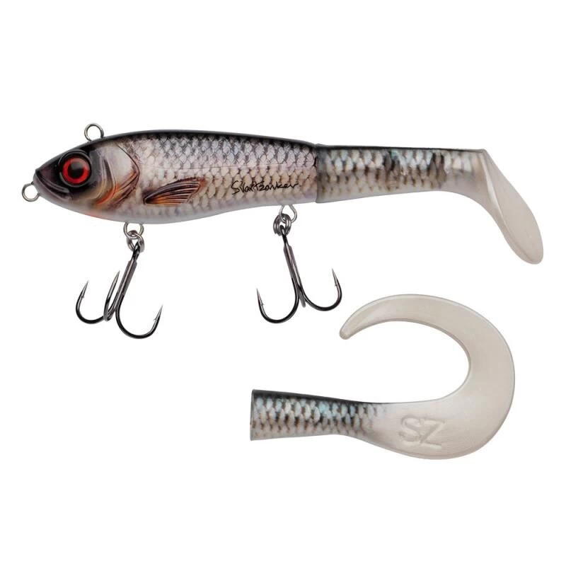 Abu Garcia Svartzonker McHybrid is een effectief en uniek hybride kunstaas waar twee werelden in één samenkomen, zacht en hard tegelijk. De eerste liploze plug met een zachte schoep. Met zijn brede en ovale lichaam geeft hij een realistisch aasvisprofiel, met een zwervend, elegant zwempatroon dat grote rovers aantrekt. Bevestig hem aan het bovenste oogje en hij zwemt dieper en met een breder zwervend patroon. Het onderste oogje geeft hem een vloeiender en ondieper zwempatroon. Wil je een nog vlottere en super ondiepe presentatie, wissel dan van de peddel naar de curlstaart.