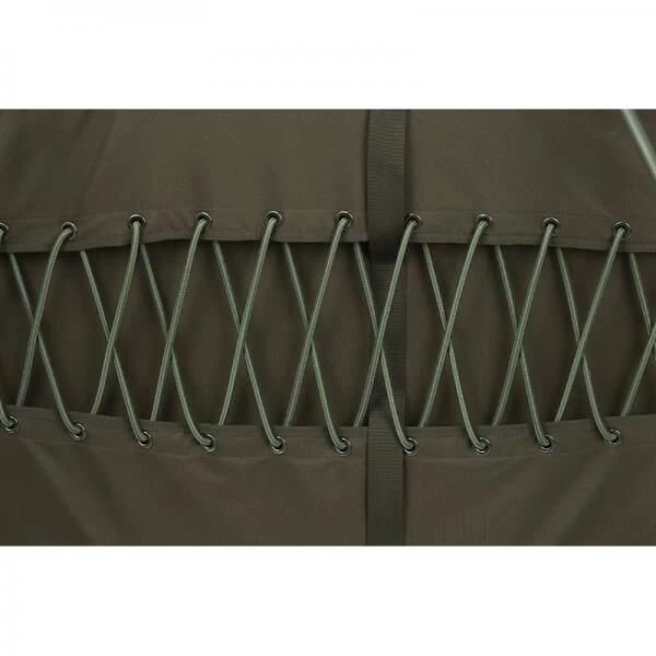 Het Compleet met Fox Flatliner 6 Leg Bedchair slaapsysteem en Flatliner 3 season slaapzak is vernieuwd en verbeterd van ontwerp. Zo is het frame volledig plat voor maximaal comfort. Uitgevoerd met dubbele scharnieren waar het elastiek doorheen loopt zodat de stevigheid van het matras overal even consistent. Het hoofdgedeelte, het midden en het voetgedeelte profiteren van het Full Lumbar Support zodat het matras overal even stevig is. Het 50mm dik matras van High Density foam zorgt voor een zacht maar toch stevig en comfortabel ligvlak. De randen van het matras zijn gemaakt van steviger foam zodat de randen niet voelbaar zijn. Aan de onderzijde van het matras een bevestigings rits om alle flatliner slaapzakken aan te kunnen bevestigen. Door de 6 poten, waarvan twee dubbele poten op het centrale deel van het frame en enkele poten aan het hoofd- en voeteneinde is de Fox Flatliner 6 Leg Bedchair een super stabiele bedchair. De poten zijn uitgevoerd met het nieuwe ‘One Touch’ Spring Lock meganisme waarmee je de bedchair op iedere ondergrond perfect kunt afstellen zodat deze stabiel staat. Dan het Side Tension Strap Ontwerp ( aan elke zijde een riem die om het frame wordt bevestigt in plaats van over het matras) hierdoor kun je de bedchair veel compacter op vouwen dan bedchairs met een enkele, centrale riem. En tot slot Velco strips aan de onderzijde van het matras om alle slaapzakken van Fox en covers aan te Fixeren.