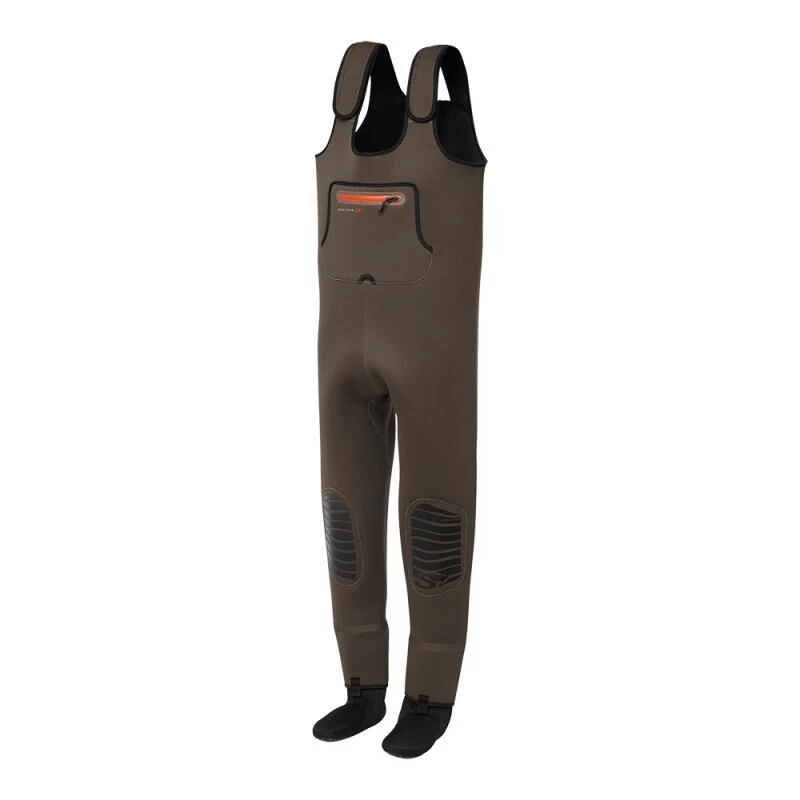 De Scierra Kenai Neopreen Chest Wader Stockingfoot is een 4mm neopreen kwaliteit waadbroek met sokken. De waadbroek is voorzien van een borstzak met waterafstotende rits en een handwarmer zak met fleece voering. Brede met klitteband suspenders en neopreen wading belt. Binnenkant is getape met japanse kwaliteit tape. De broek is ook voorzien van 4mm neopreen kniebeschermers en kwaliteits linker en rechter kousenband.