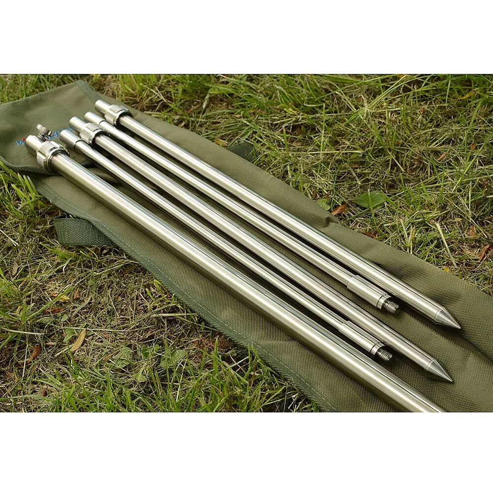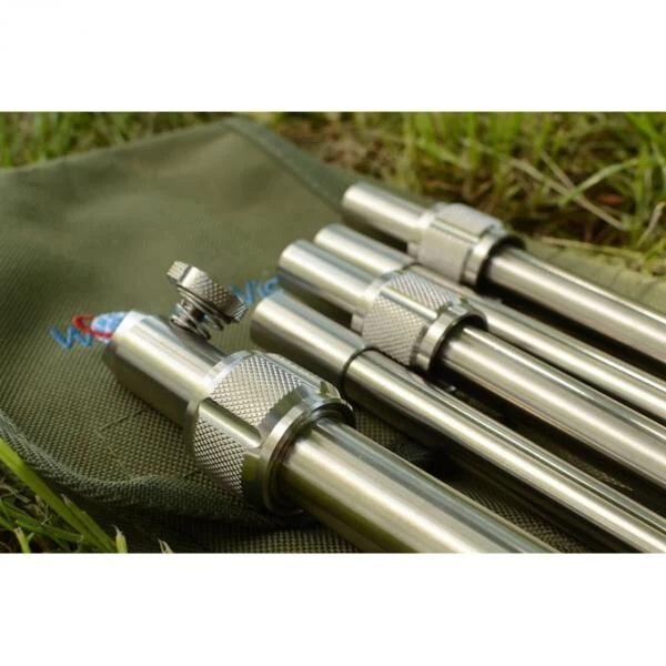 De 18″ verstelbare poten passen op de voorkant van de rodpod. Met de extra lange poten is het bijna mogelijk om de hengels verticaal op de rodpod te plaatsen. De Lange poten zijn ook inzetbaar als stormsticks of als lange banksticks. Bij deze kit zit ook de verstelbare main bar (42″ to 76″). Al deze artikelen kunnen worden opgeborgen in een waterafstotende sleeve. Natuurlijk zijn alle Solar P1 artikelen gemaakt van de beste kwaliteit Stainless Steel.