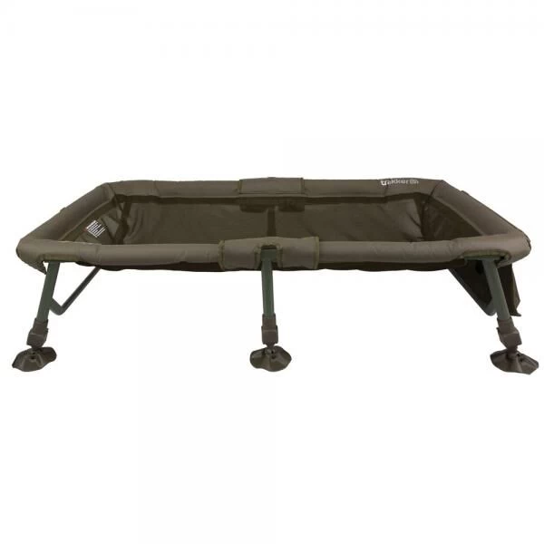 De Trakker Sanctuary Cradle biedt de beste veiligheid en protectie voor karpers door het zwevend cradle concept. Ze zijn gemaakt om de handling, het onthaken en fotograferen zo makkelijk mogelijk te maken. De cradle heeft een handig frame wat kan worden ingeklapt voor het makkelijk te kunnen transporteren. Ook biedt de cradle een multifunctioneel interne cover gemaakt van vis vriedenlijk 420 Denier pvc stof. Deze wordt gebruikt om de vis in te leggen en deze nat te houden door middel van een water tas. De cover is volledig te verwijderen en kan dus makkelijk schoon gemaakt worden. Als je de cover niet gebruikt heeft de cradle van zichzelf een ingebouwde drain waar het water door weg kan lopen. De 6 poten van deze cradle zijn volledig verstelbaar en kan dus op iedere ondergrond gebruikt worden. Een grote accessoire tas aan de kopse kant kan handig zijn voor het opbergen van de nodige spullen tijdens het onthaken. De gehele cradle is op te bergen in een tas met rits.